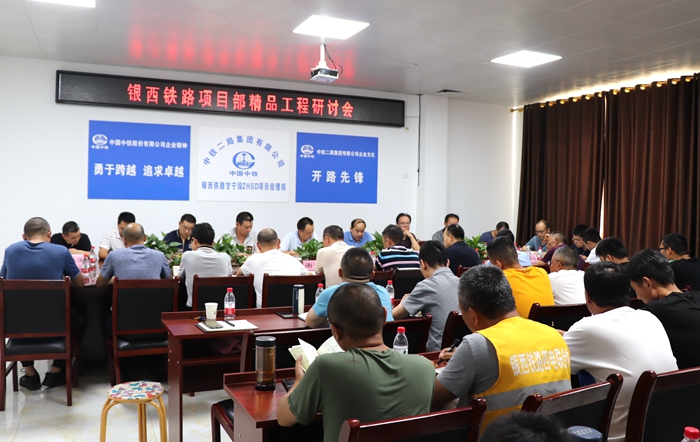 会议由公司副总经济师、银西项目经理林安普主持,公司副总经理、总工程师谢宝志,副总工程师、技术中心副主任周宏,工程部部长邓文,技术中心专家和银西项目部全体成员、各参建施工分公司及劳务公司主要领导、各作业队队长、技术主管、现场负责人共计50余人参加此次精品工程研讨会。