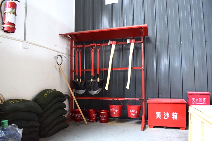 检查时发现,料库材料堆放有序,做到了分专业分类堆放,附有标识牌,并按规定注明了材料名称、数量、进场时间、生产厂家等。对于现场回收的废料,也做好了统一的收集整理。为确保材料的安全性,料库分别在东南西北四个方向安装了摄像头,实现了全方位监控。同时,料库按规定配备了消防灭火工具和防汛物资,能满足防火防汛的要求。