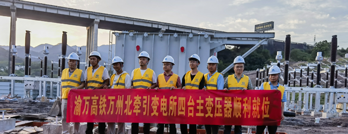 重庆至万州高铁万州枢纽项目万州北牵引变电所主变压器成功吊装就位