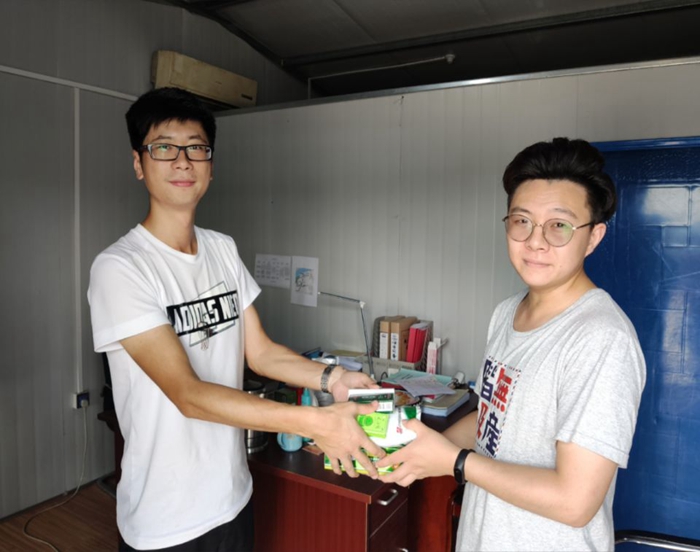 图2:胡主席为项目部员工发放防暑降温药品