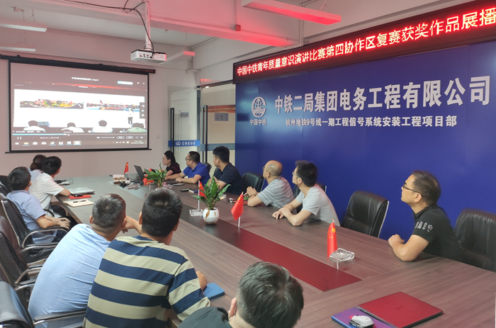 9月17日下午,在项目经理陈岵的主持下,项目部全体员工在项目部会议室参加了中国中铁青年质量意识演讲比赛第四协作区复赛获奖的作品展播,展播内容为曾子倩所演讲的内容:《绝不掉以轻心,因为赖以生存》。