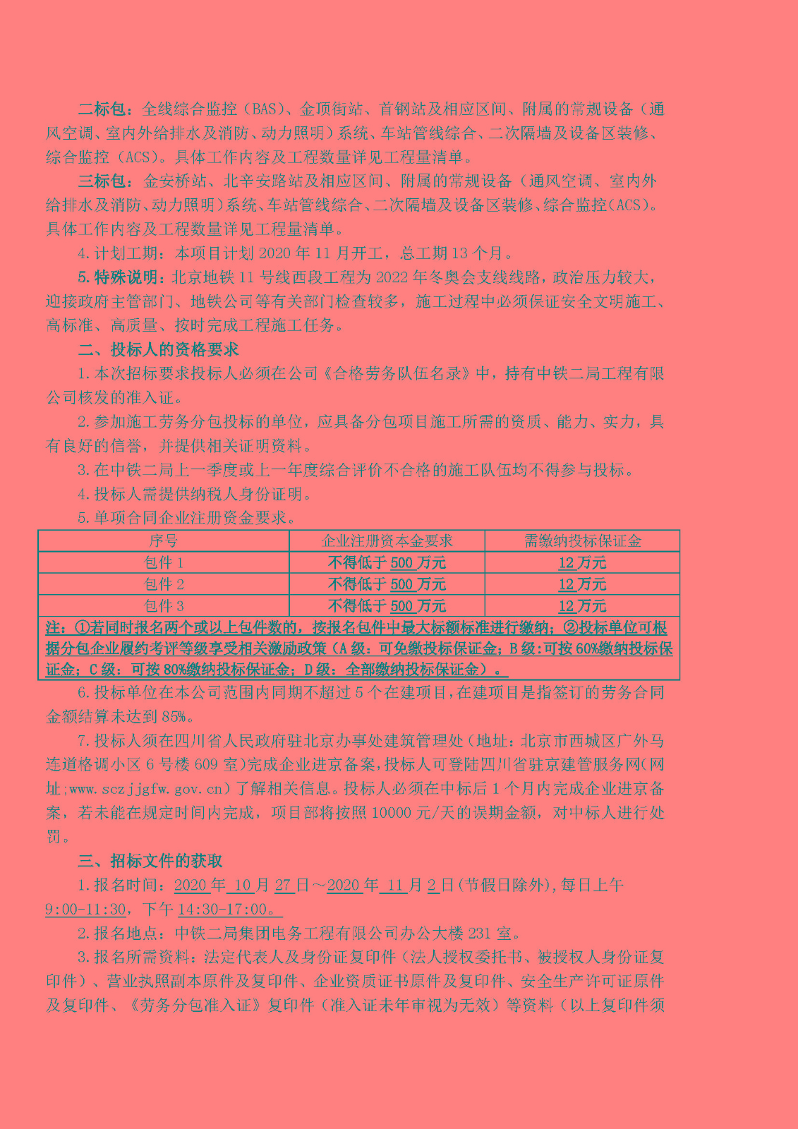 【招标公告】-北京轨道交通11号线西段工程供电与机电系统采购及安装工程项目